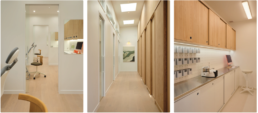 Key design elements include seamless oak panelling guiding movement, gentle curves echoing balanced smiles, skylights flooding the hallway with light, and bespoke cabinetry integrating clinical equipment for streamlined workflows. The result is a restorative, spa-like space that reshapes expectations of an orthodontic visit.